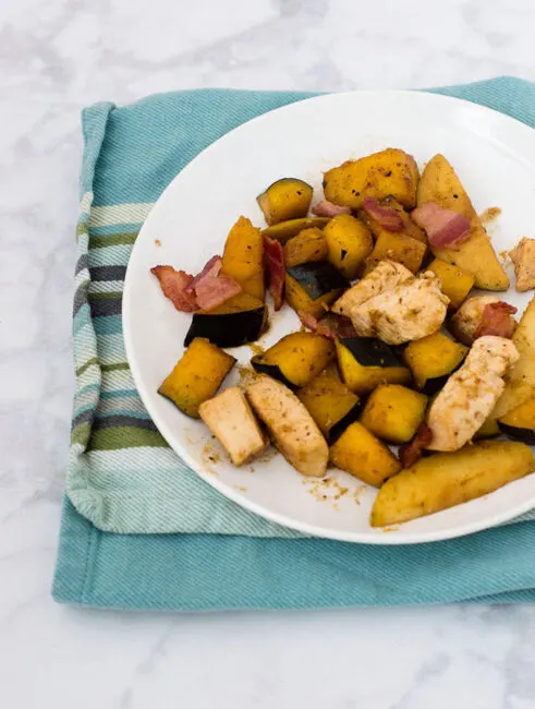 Home » Main Course » Apple, Squash and Chicken Skillet This apple, squash and chicken skillet meal is perfect for busy weeknights: ready in under 30 minutes, and only one pan to wash! #SundaySupper Home » Main Course » Apple, Squash and Chicken Skillet