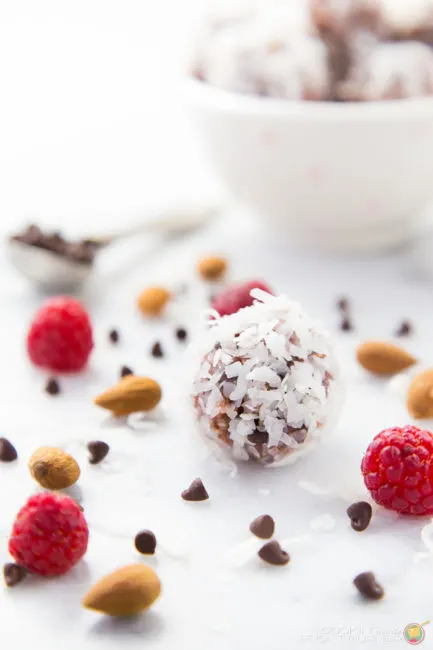 Home » Roundups » Back to School Snacks Roundup Raspberry Coconut Energy Bites by Cooking on the Front Burners Home » Roundups » Back to School Snacks Roundup