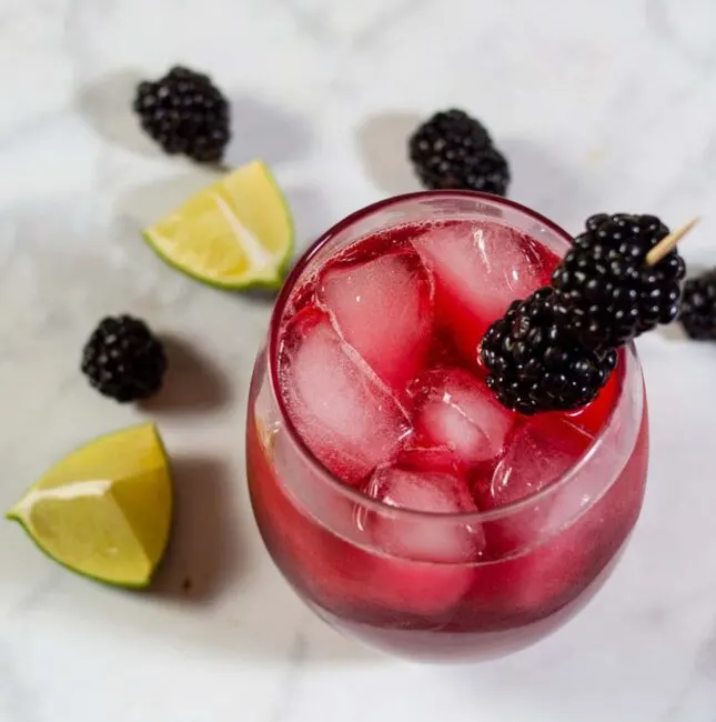 Blackberry lime margaritas have a vibrant color and delicious flavor. Adding lime zest to the simple syrup ensures that the blackberry doesn't overpower the drink's flavor.