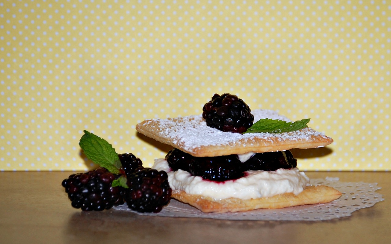 - Sift the remaining ¼ cup of powdered sugar over the remaining 6 squares, and sandwich on top of the mousse and berries.