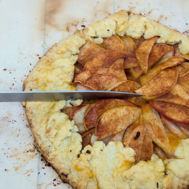 Cooler nights call for warm dessert. This honeycrisp apple tart combines sweet-tart apples, cinnamon and pie crust with no special baking dishes required! #SundaySupper TheRedheadBaker.com