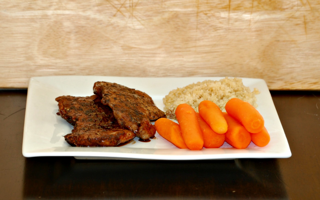 - Plate each pork chop with your side dishes (I served them with carrots and whole wheat couscous) and drizzle any remaining glaze over the chops.