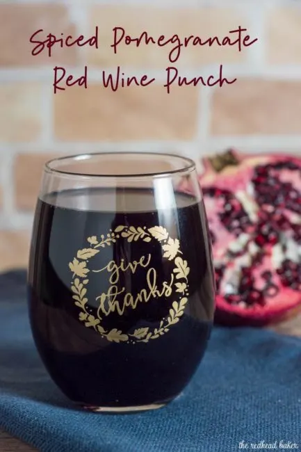 Spiced pomegranate red wine punch is a delicious cocktail for holidays and average days alike. Serve it warm or cold, garnished with a twist of orange rind.