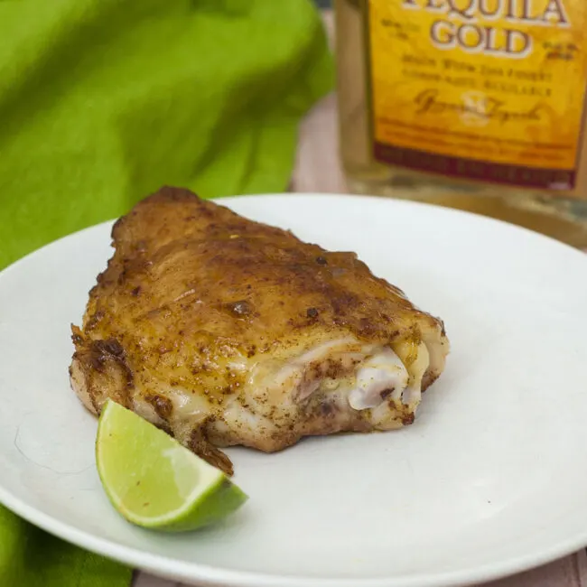 Pineapple juice, tequila and two kinds of chili powder add big flavors to moist chicken thighs. Shred leftovers (if there are any!) for tacos the next night. #CLBlogger TheRedheadBaker.com